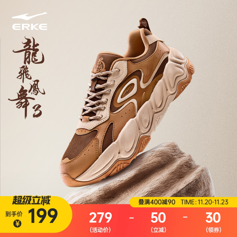 Hongxing Erke Dragon Flying Phoenix Dance 3 sneakers, men's shoes, autumn and winter new dad shoes, height-boosting shoes, men's casual shoes