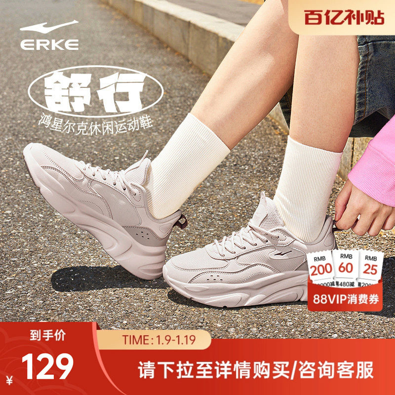 Hongxing Erke Shuxing sneakers, autumn and winter new women's shoes, leather shoes, casual shoes, height-boosting shoes, lightweight running shoes