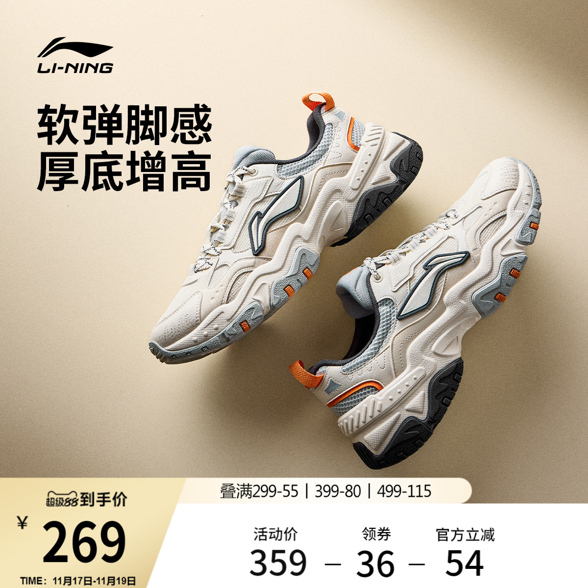 Li Ning Brown Sugar丨Casual shoes men's shoes 2025 autumn new retro daddy shoes shock-absorbing thick-soled heightened sneakers