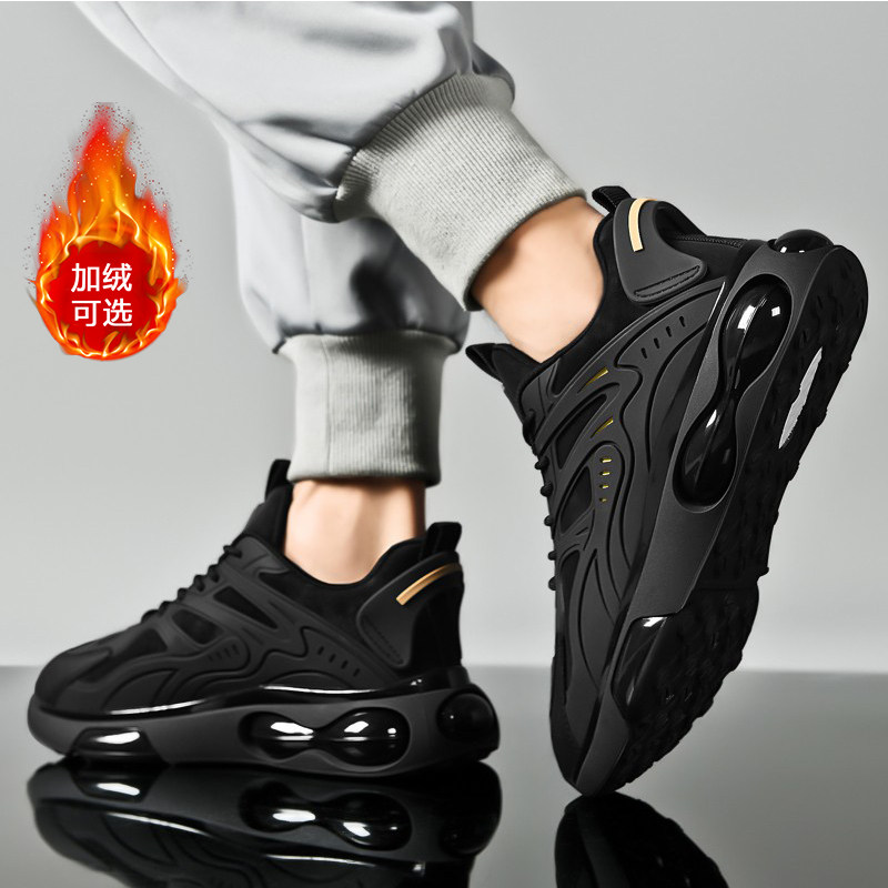 Black air cushion sneakers men's winter new fleece warm ultralight sports dad shoes shock-absorbing men's running shoes