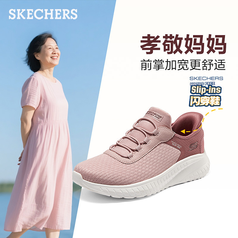 Skechers flash shoes, light pedaling shoes, women's shoes, mother's shoes, middle-aged and elderly summer wide last casual shoes