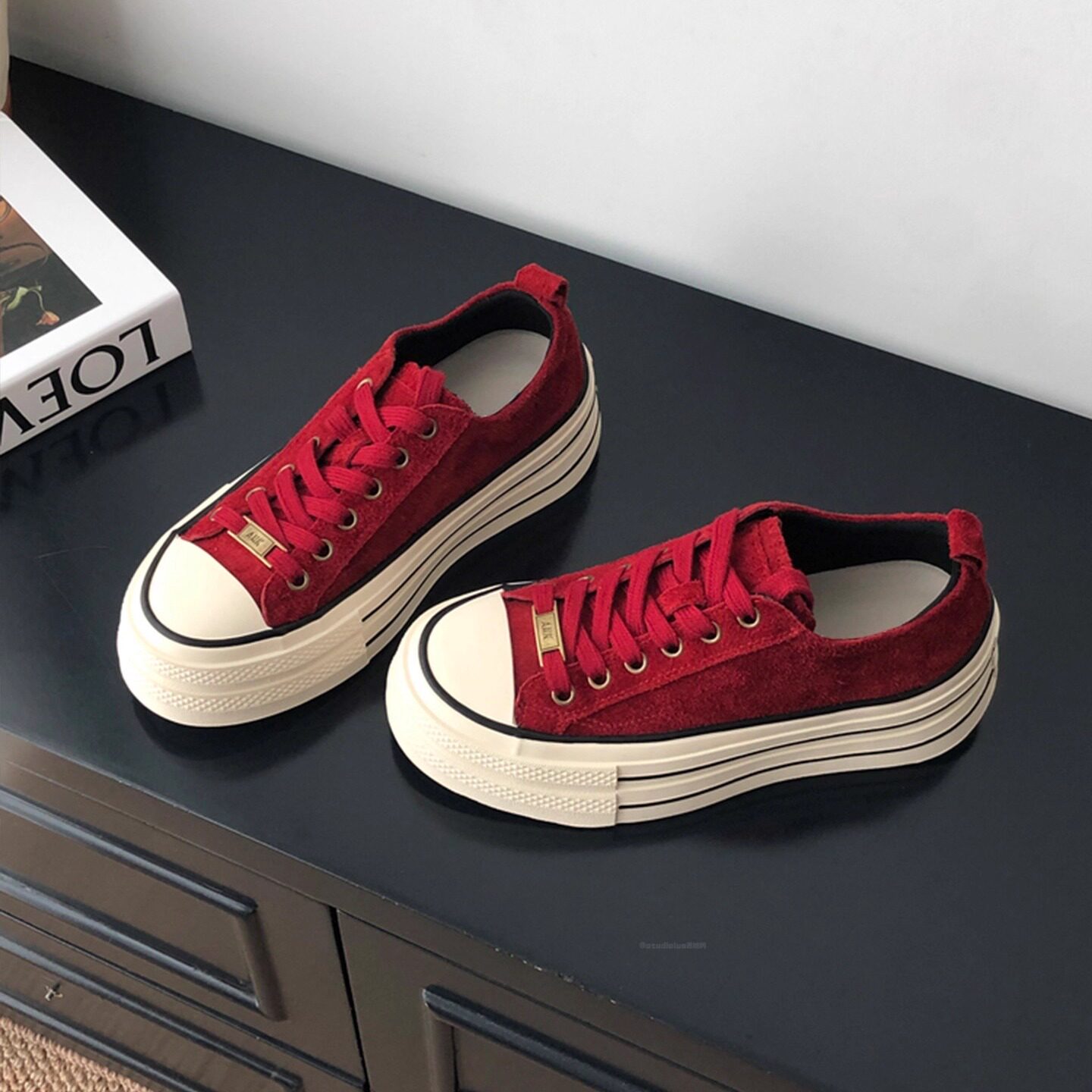 Hong Kong Ancora Red Leather Board Shoes Women's 2026 Spring and Autumn New Thick-soled Versatile Fashion Maillard Casual Shoes