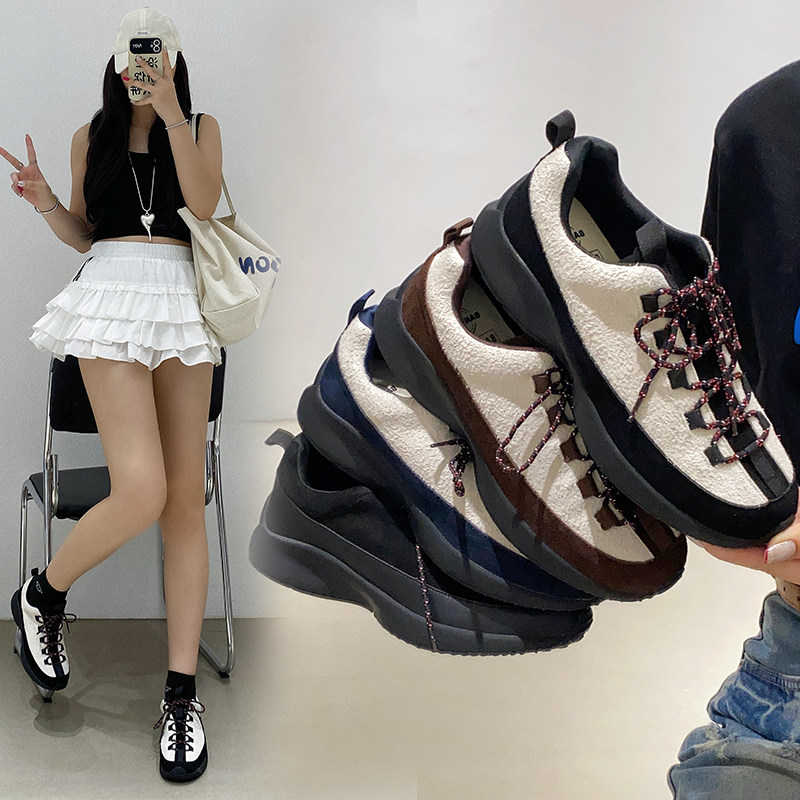 Hong Kong's new 2026 spring Korean fashion and versatile casual mountaineering sneakers women's platform heightening daddy shoes ugly cute