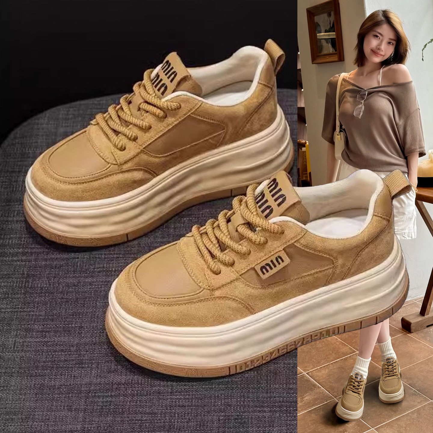 Hong Kong leather muffin casual shoes women's 2026 spring and autumn fashion thick soles increase height versatile bread shoes sneakers