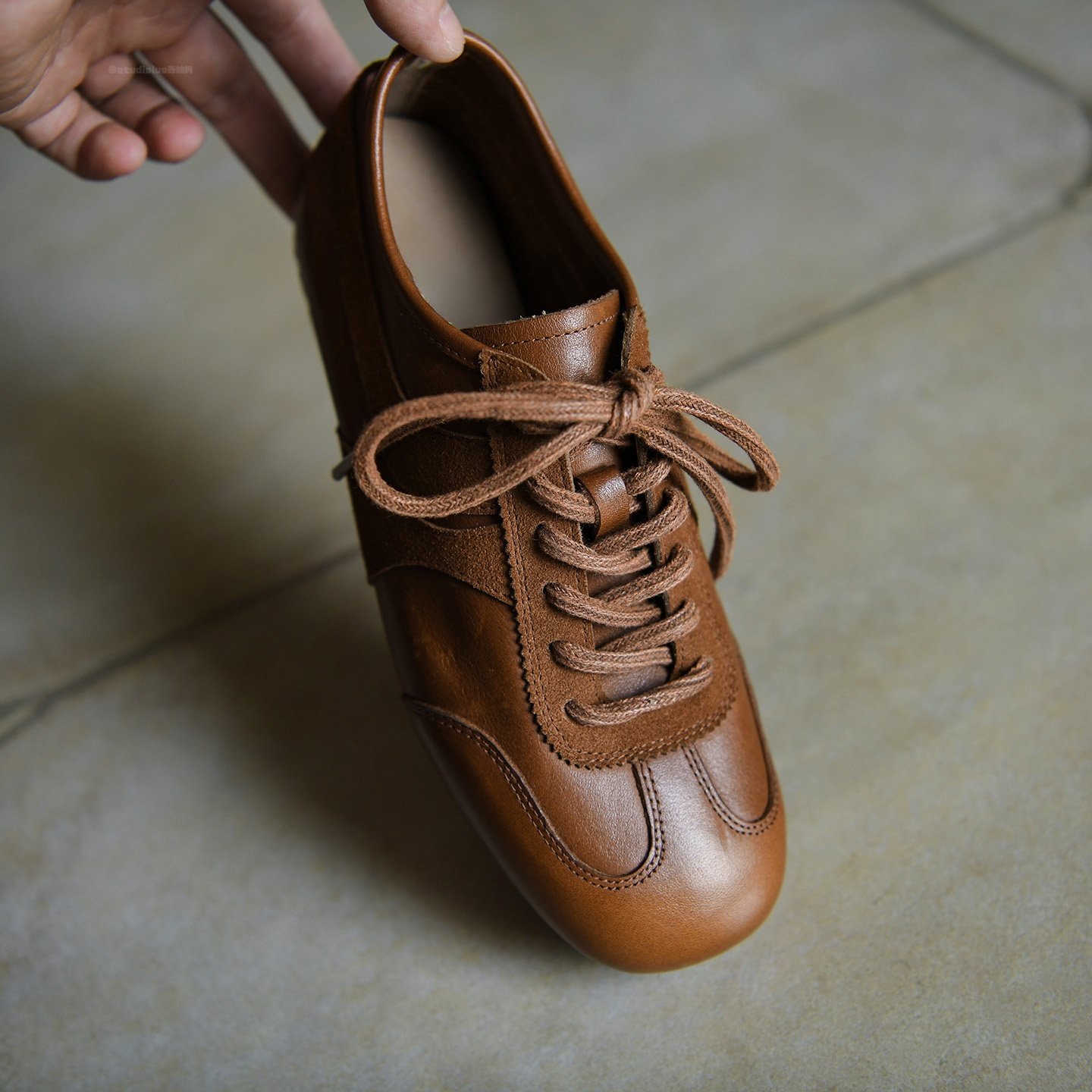 Hong Kong Cowhide Maillard Shoe Training Women's 2025 Autumn New Versatile Round-toe Fashion Casual Shoe Board Shoes Flat Heel Women's Shoes