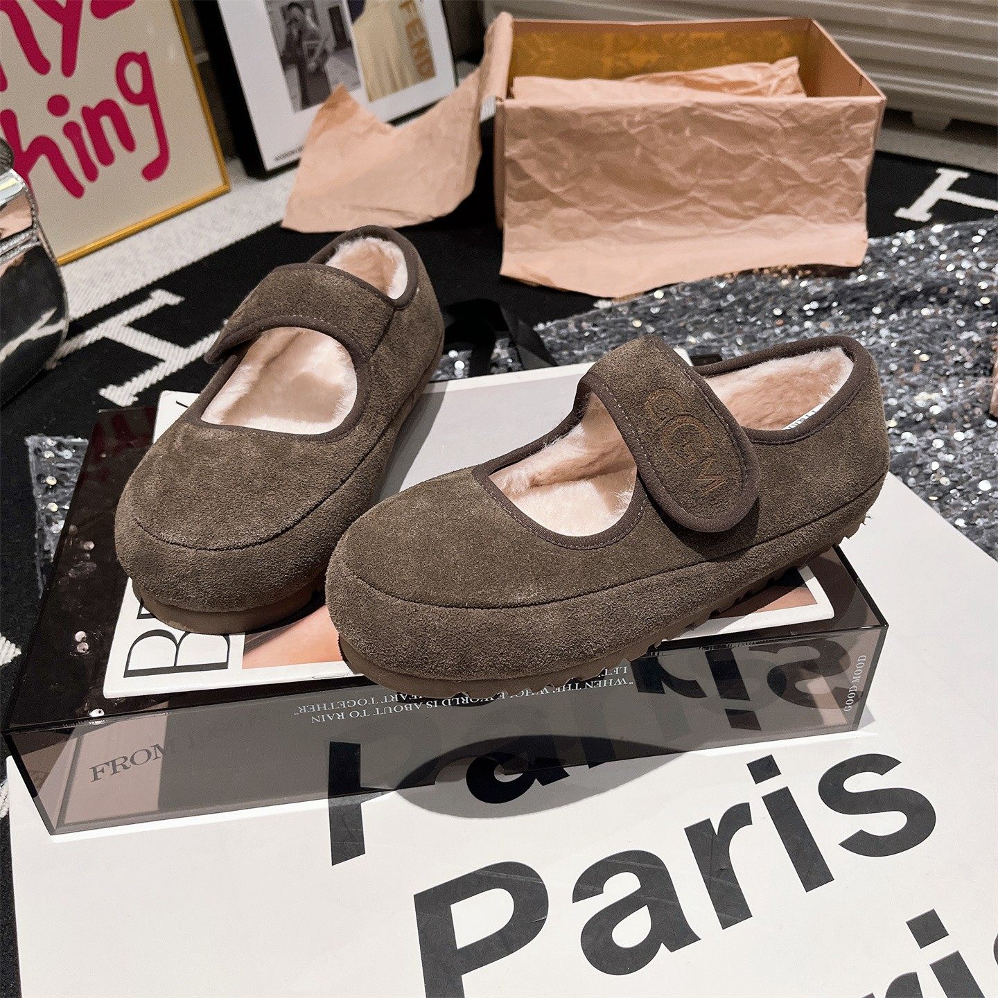 Hong Kong leather flat Mary Jane Birkenstock wool cotton shoes women's 2025 winter velcro lazy pumps casual shoes