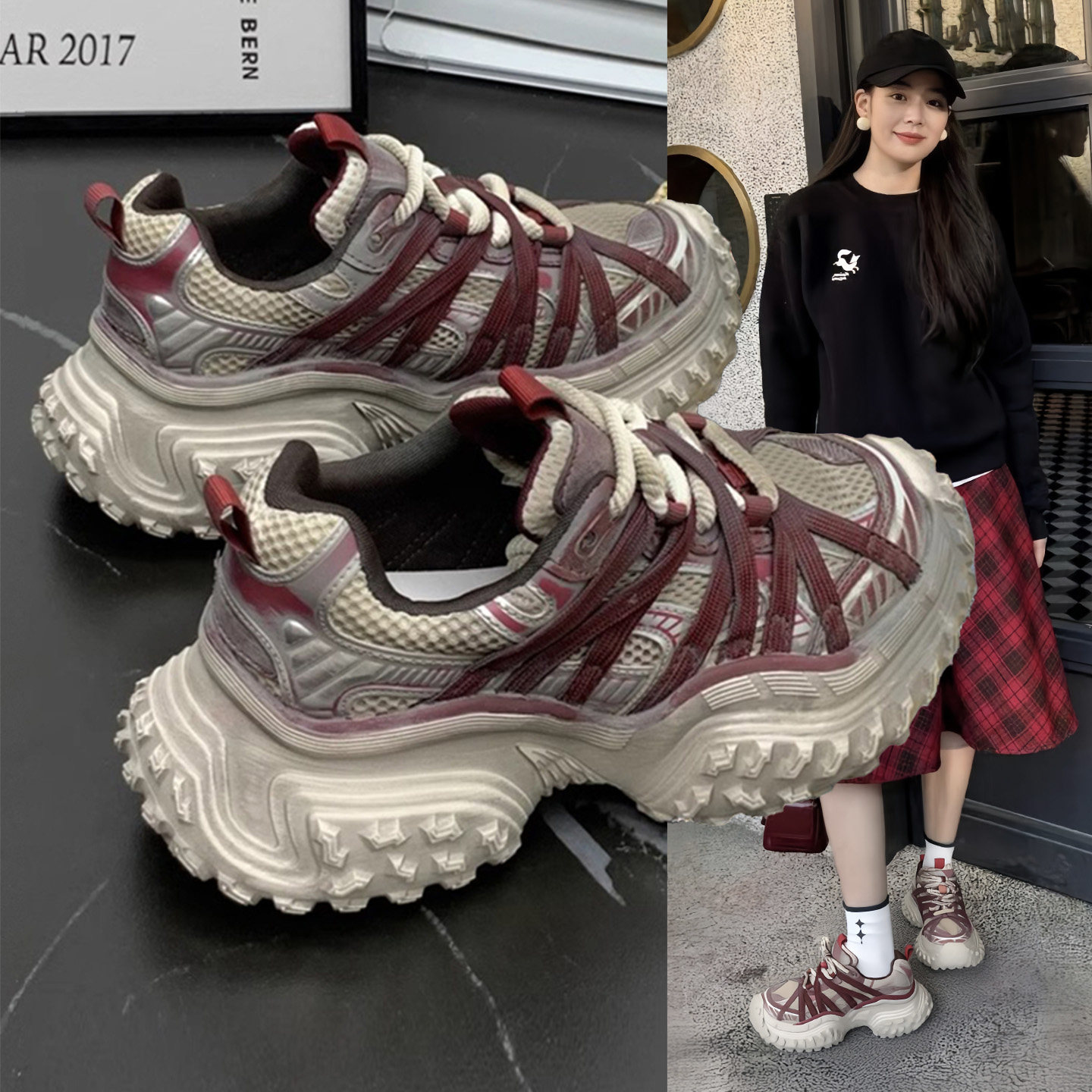 Hong Kong durian-soled encore red daddy shoes women's casual shoes 2025 spring and autumn new platform black warrior sneakers