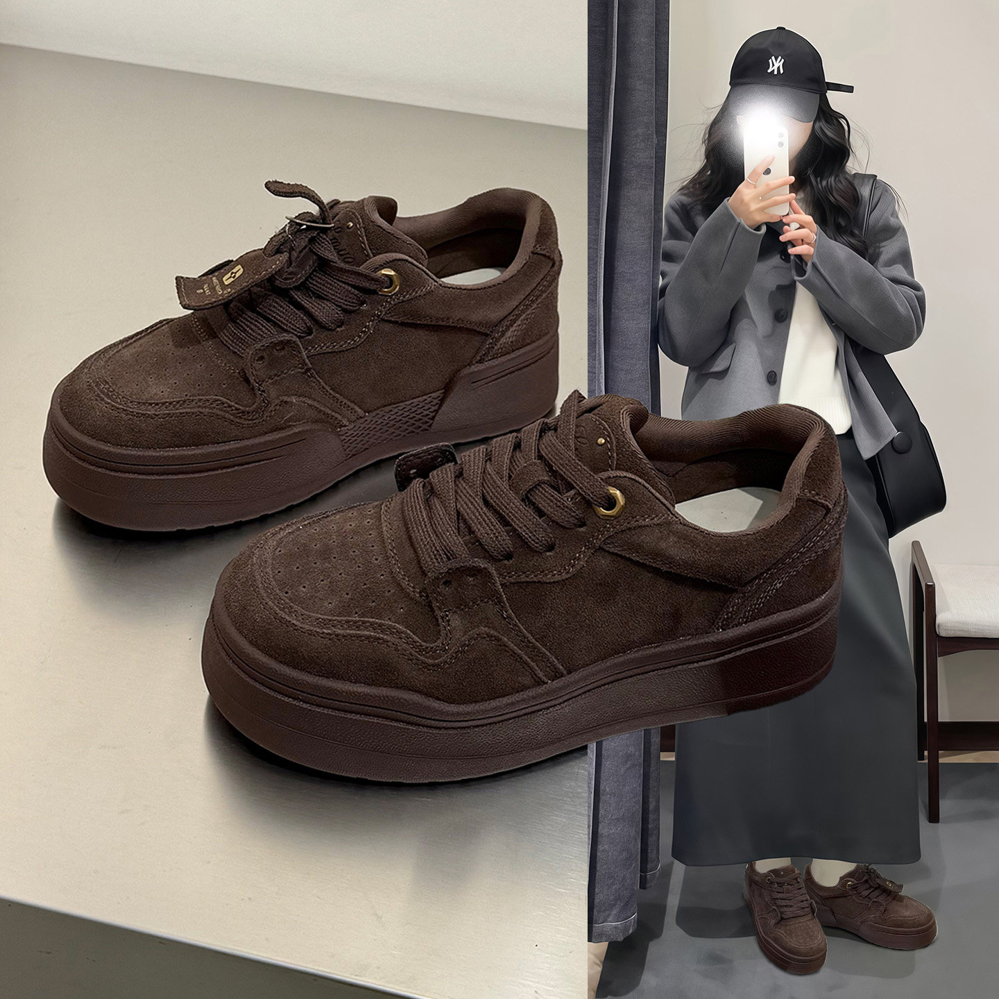 Hong Kong matte leather platform shoes women's 2025 autumn/winter new small height increase shoes lightweight sports casual shoes