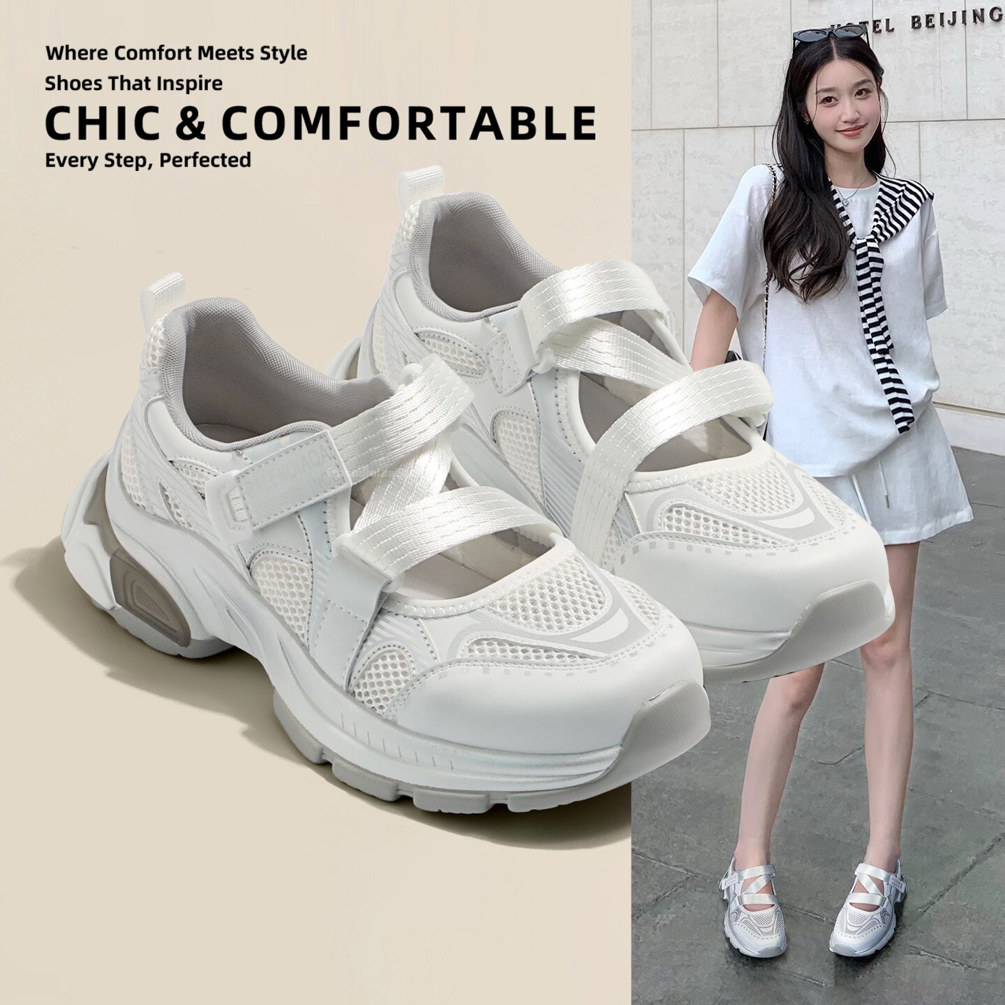 Hong Kong fashion round mesh shoes women's 2026 summer new lightweight and breathable sports training shoes flat casual shoes