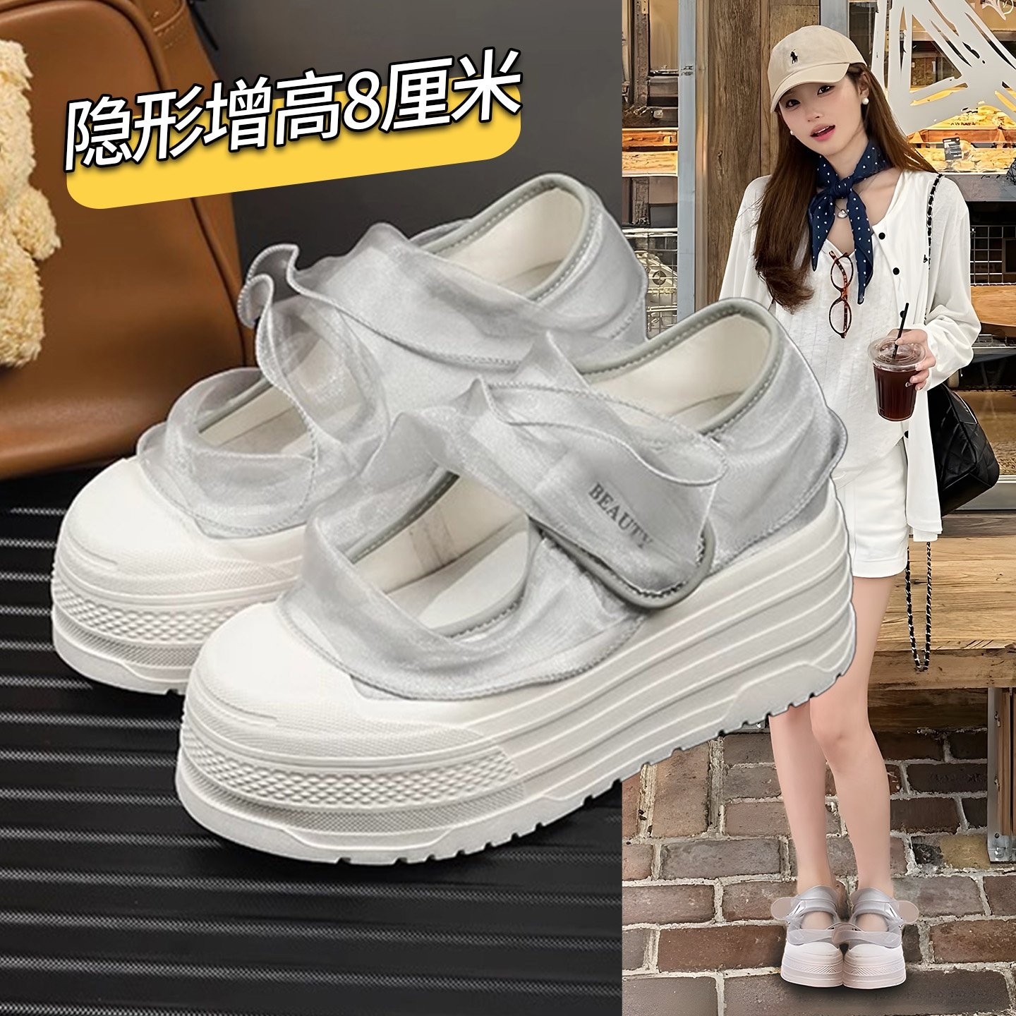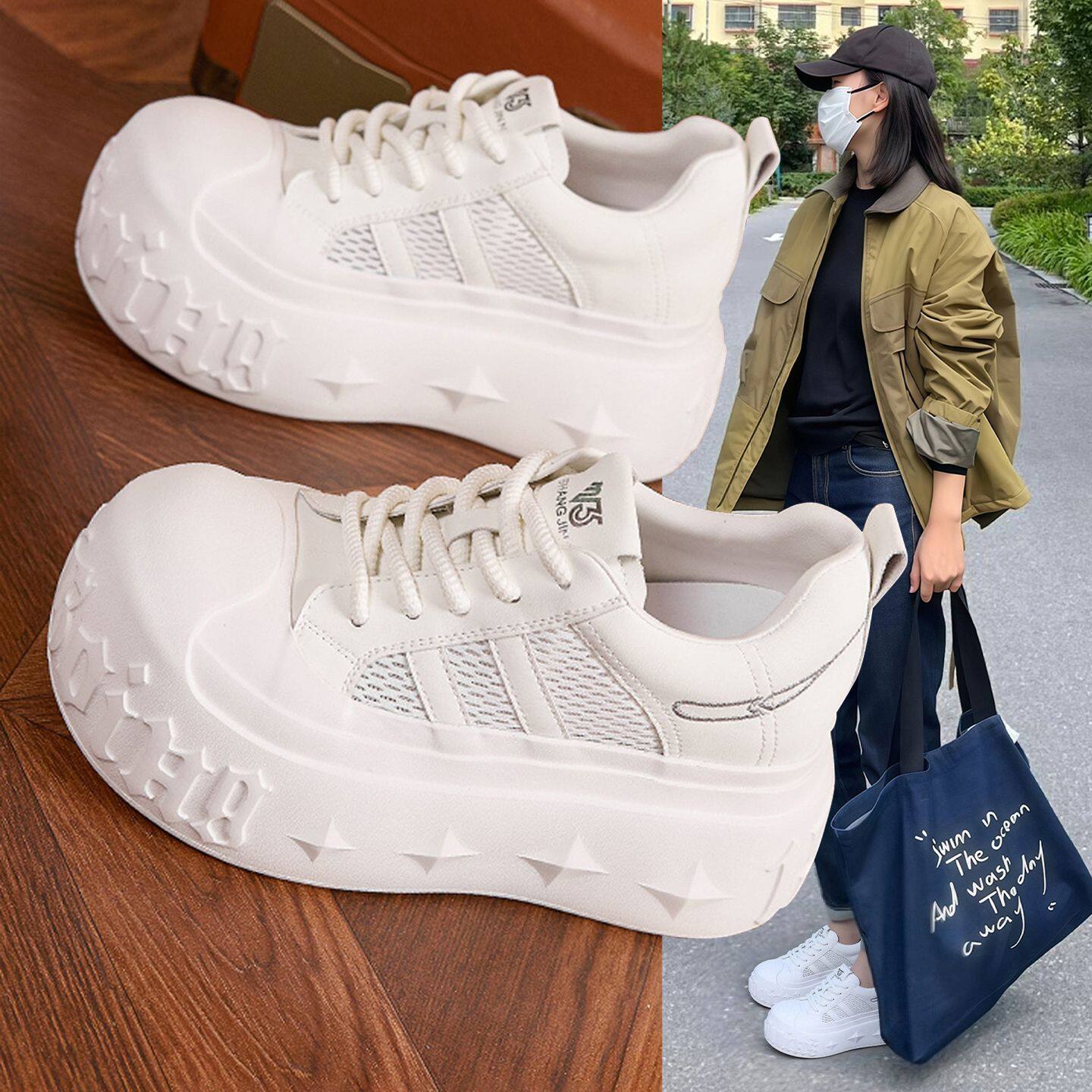 Hong Kong's high-heightened satin white shoes women's 2026 summer new platform lightweight board shoes are comfortable and versatile casual shoes