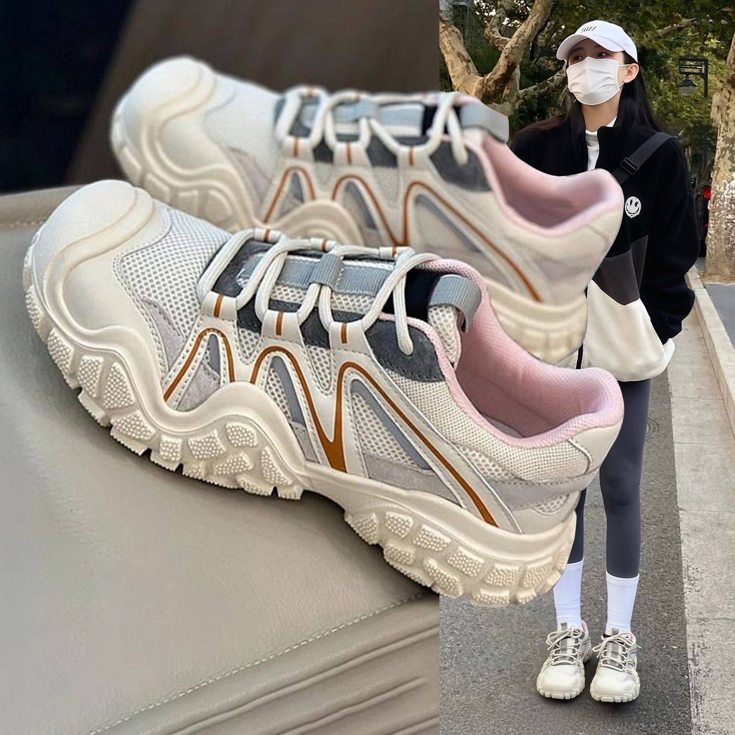 Hong Kong platform mesh sneakers women's 2026 spring and autumn new casual hiking shoes breathable running shoes daddy shoes