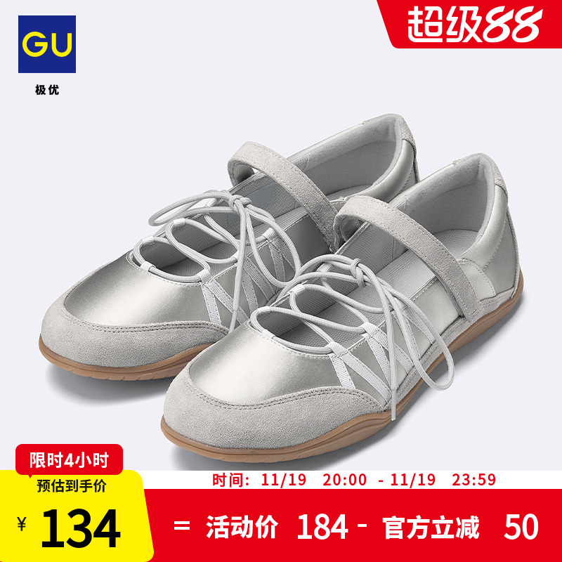 GU excellent women's strap-on ballet casual shoes are comfortable and water-repellent fashion new products 357744 for autumn 2025