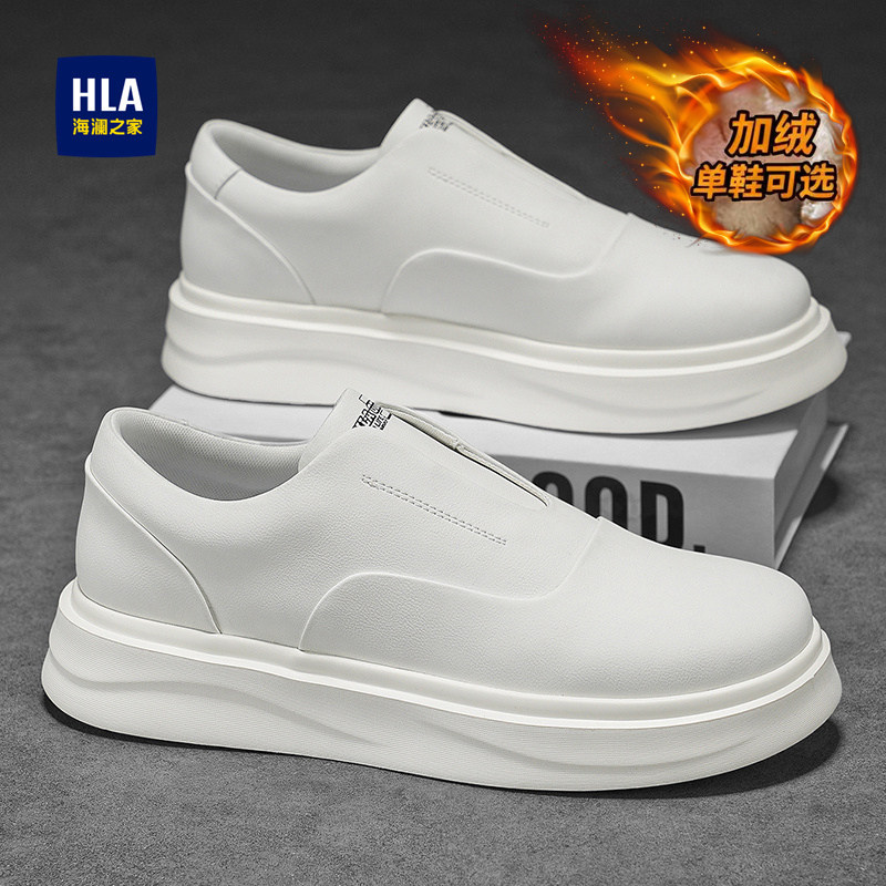 Heilan Home Men's Shoes 2026 New Autumn and Winter Fleece Cotton Trendy Shoes One Foot Loafers Heightened Small Whiteboard Shoes