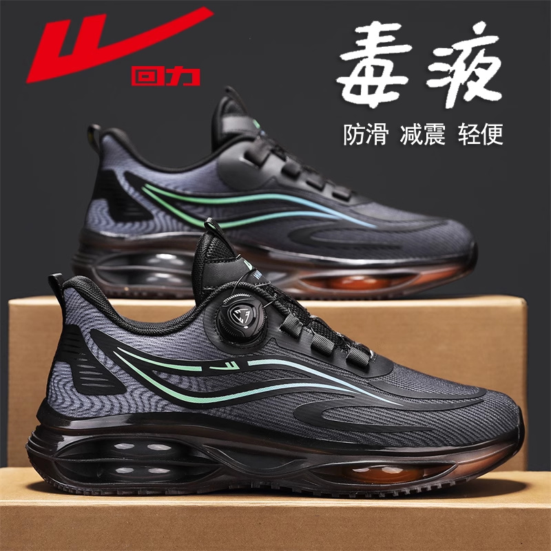 Pull-back rotary button sneaker men's shoes new black autumn breathable mesh air cushion shock-absorbing soft-soled running shoes for men
