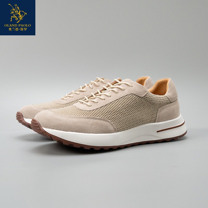 Holland Paul Lightweight and Breathable Mesh Spliced Cow Suede Casual Shoes Trendy Shoes Cowhide Men's Sneakers