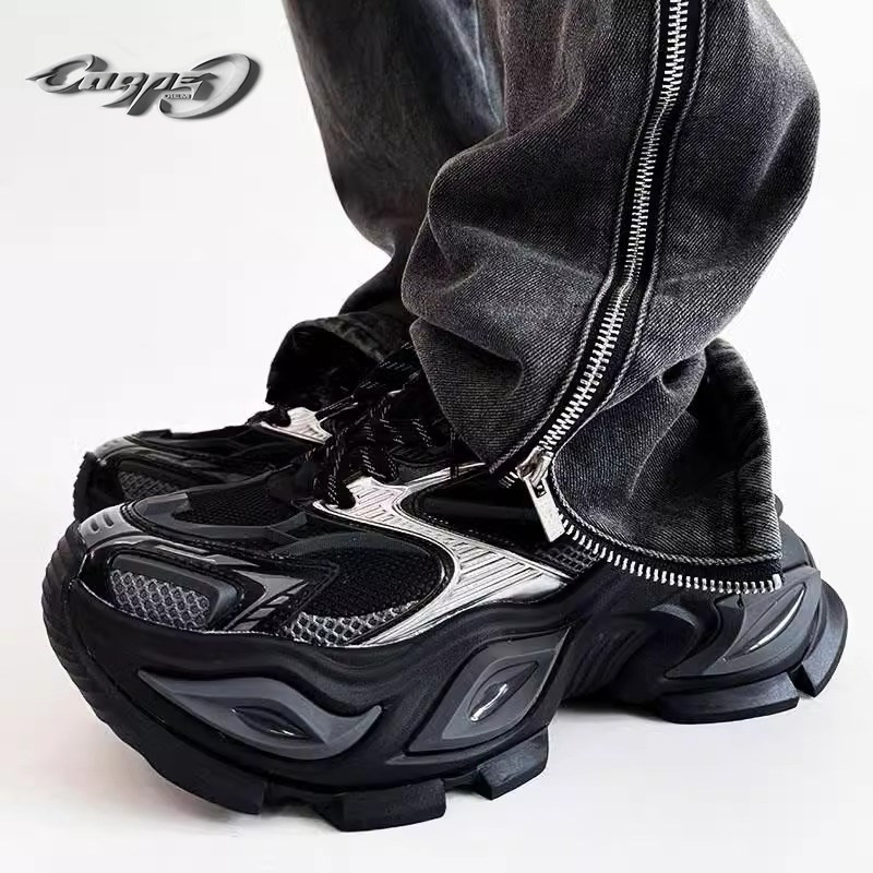 CARPE DIEM niche original black warrior dad shoes for men and women mecha style sports thick-soled cat eye shoes