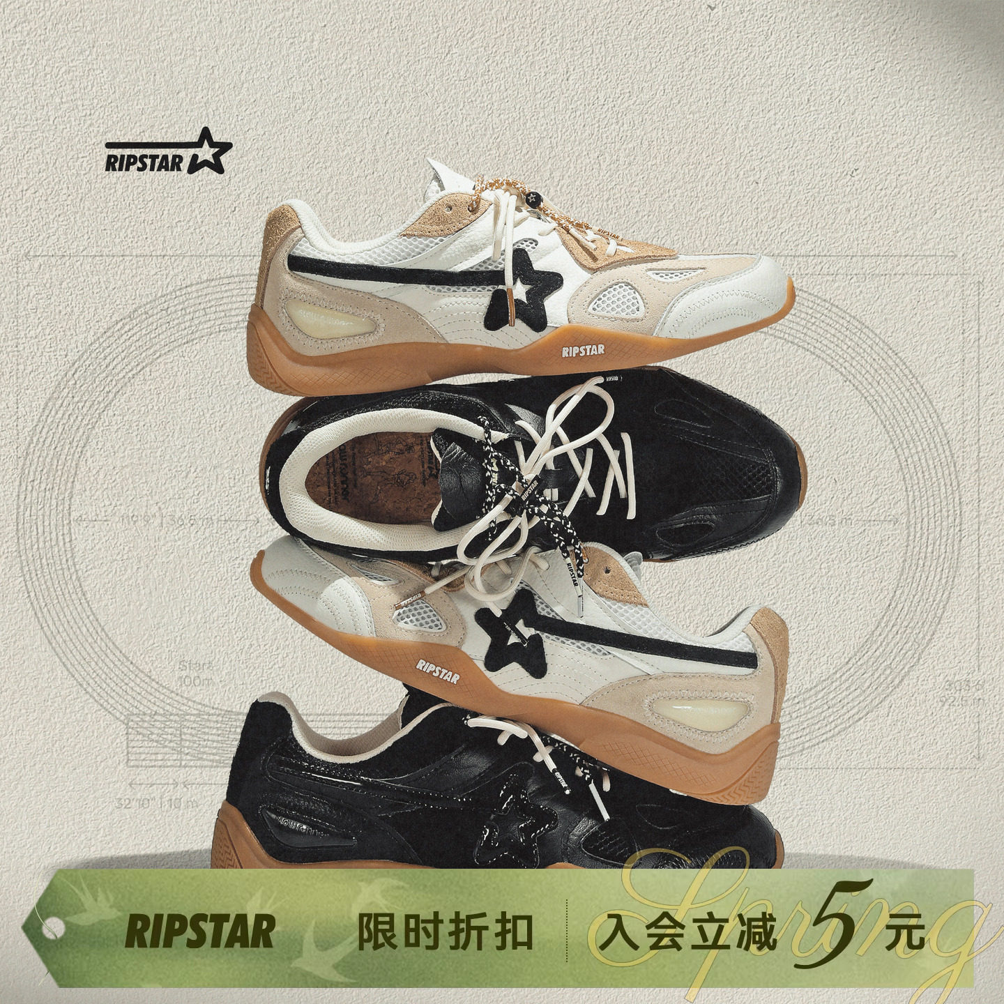RIPSTAR/Explosive Star Sneakers Men's and Women's Inner Height Increase Breathable Training Shoes [Obsidian/Pebbles]