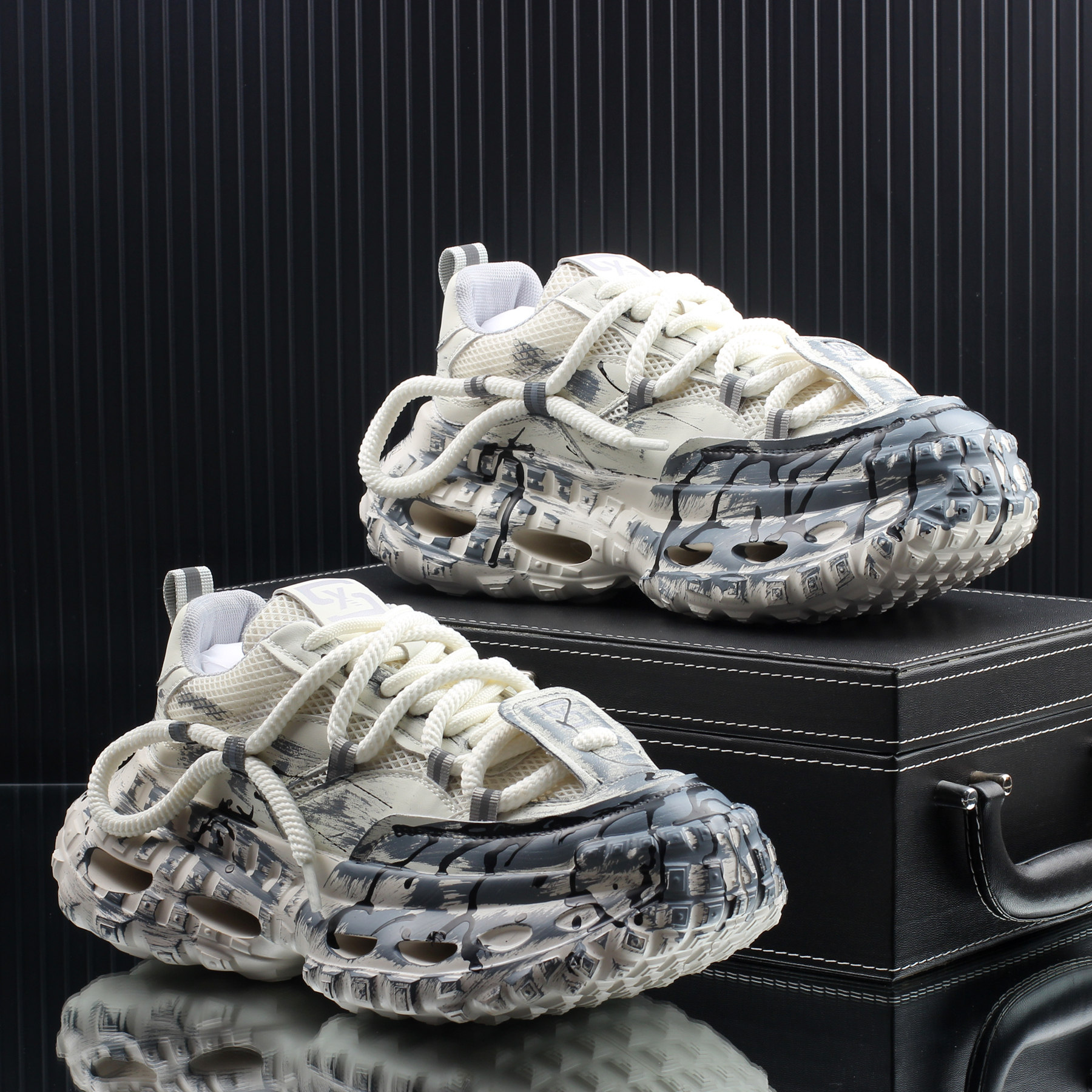 2026 spring new fashion trendy brand ruffian handsome casual dad shoes men's breathable and heightened graffiti trend men's shoes