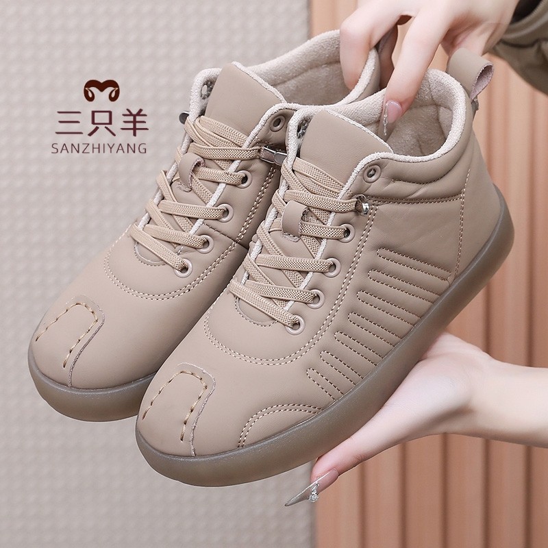 Three sheep leather sports versatile, 2025 autumn and winter new high-top bread shoes, comfortable casual walking shoes, women's plus cotton