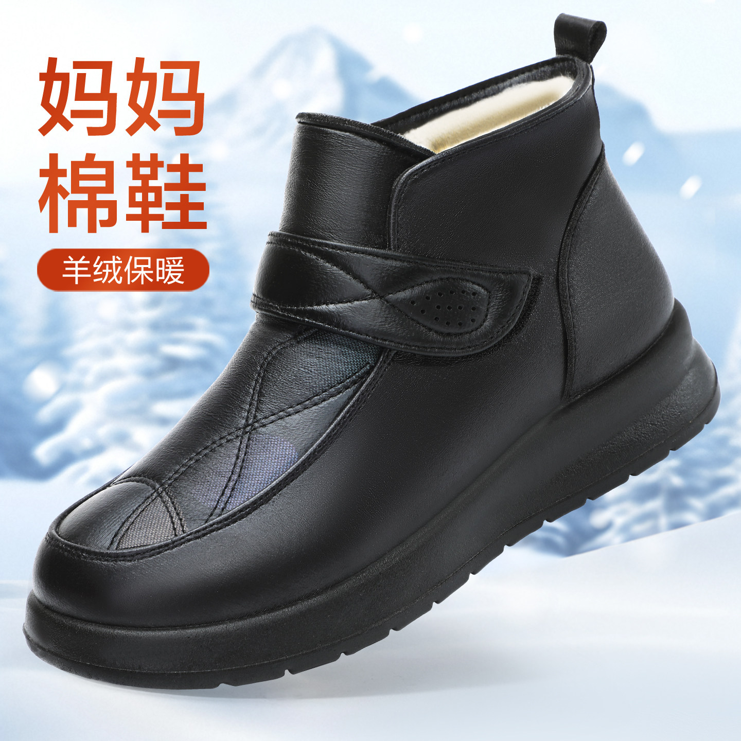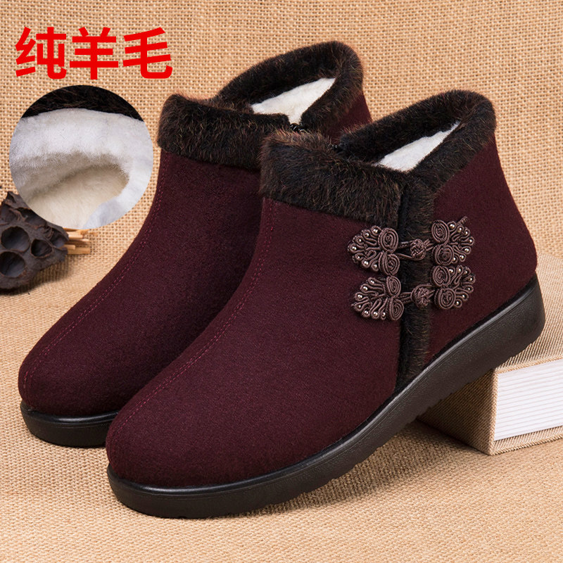 Winter thickened warm pure wool mom shoes old Beijing women's cotton shoes non-slip soft sole middle-aged and elderly ladies snow boots