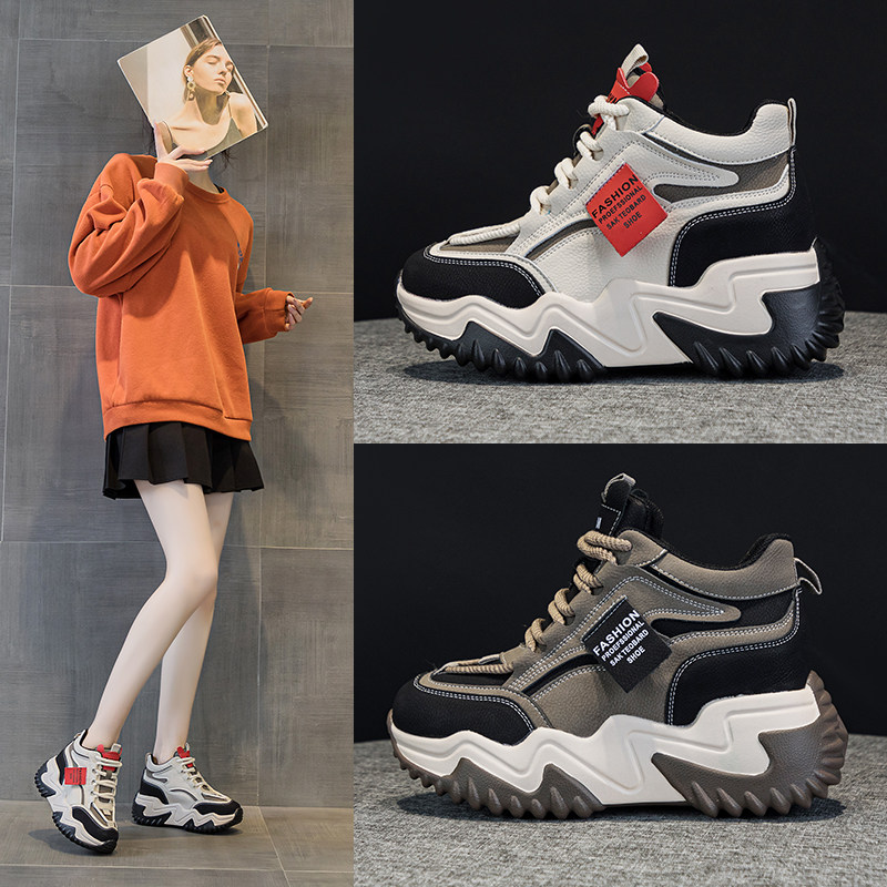 Genuine leather platform sole heightened women's shoes 2025 autumn and winter new small height increase casual high-top women's shoes plush women's shoes