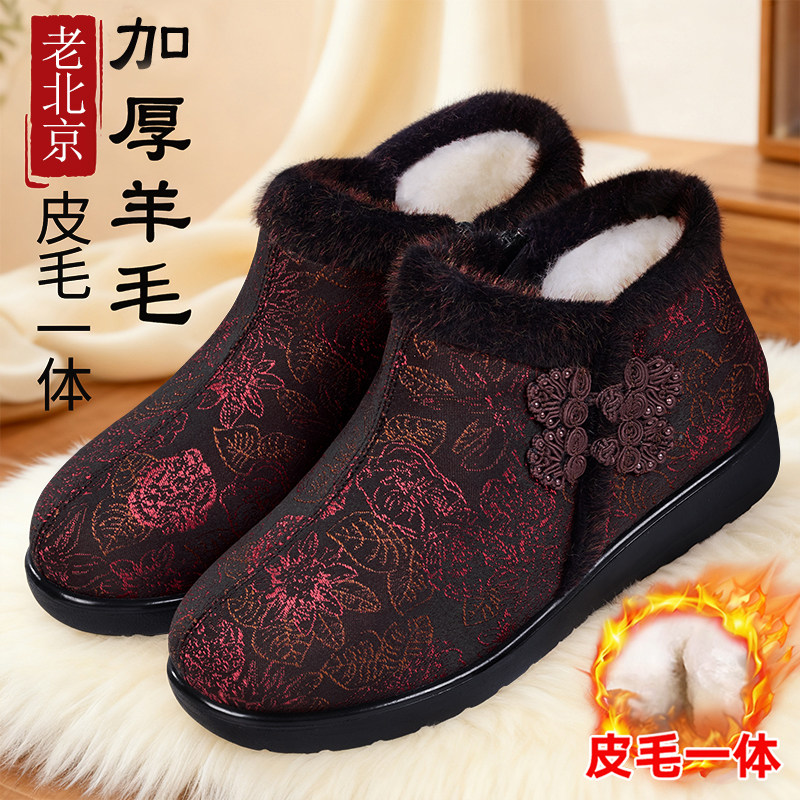 Old Beijing cloth shoes women's winter fleece wool warm cotton shoes for the elderly Genuine non-slip thickened mother shoes for the elderly
