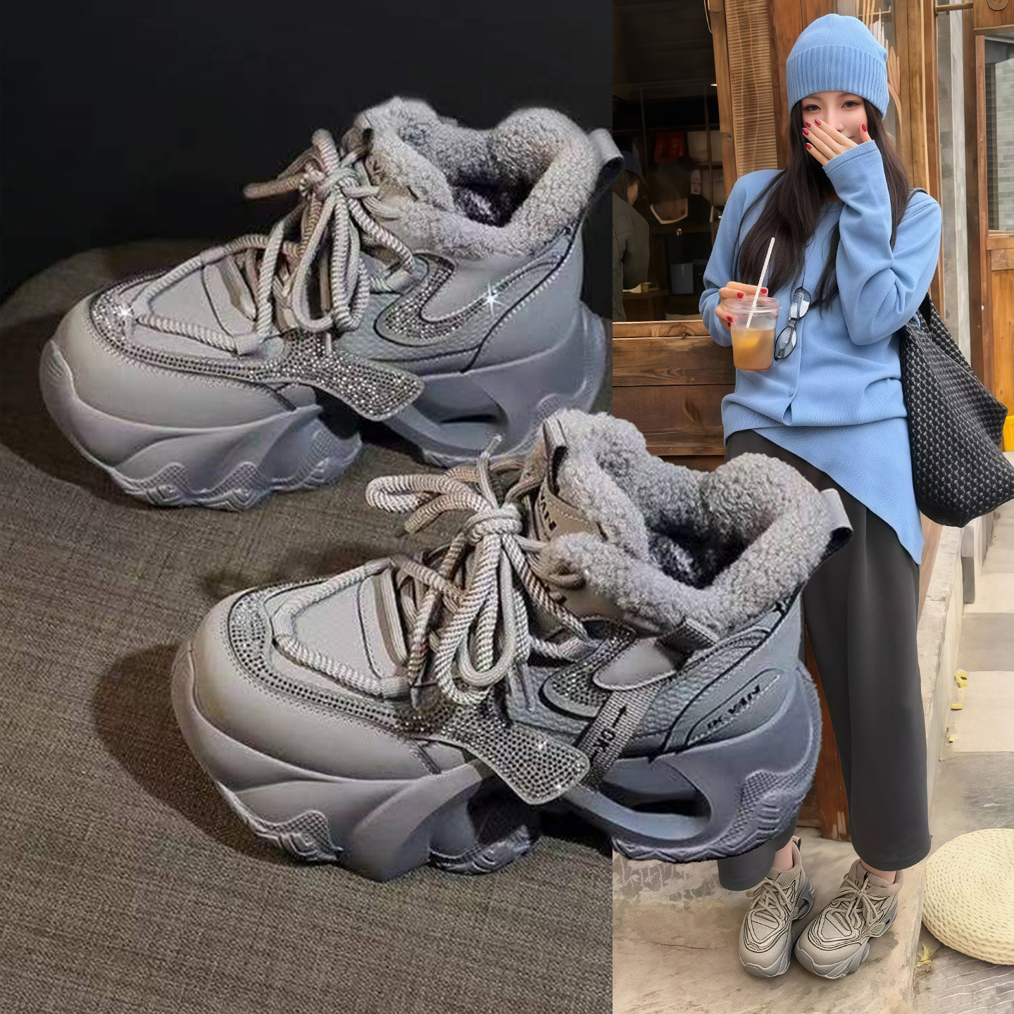 Hong Kong platform heightening daddy shoes, lamb wool warm fashion snow boots, women's winter versatile sports and casual shoes