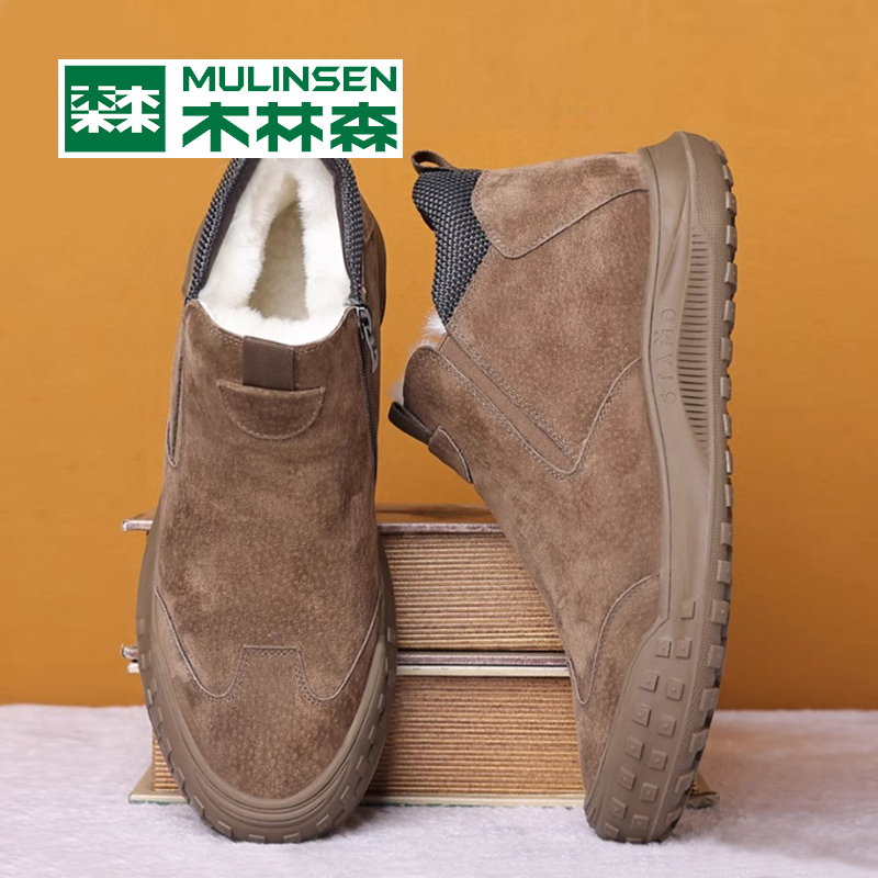 Mulinsen men's shoes in winter, fleece and thickened warm cotton shoes, one foot of high-top non-slip soft-soled dad snow cotton boots