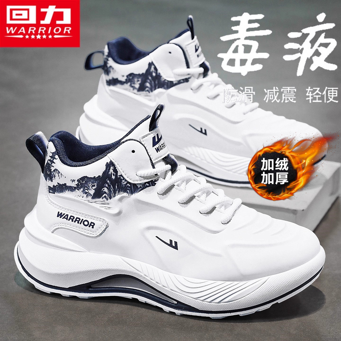 Pull-back high-top men's shoes, winter fleece sports casual shoes, anti-slip, shock-absorbing, wear-resistant, height-increasing basketball warm shoes for men