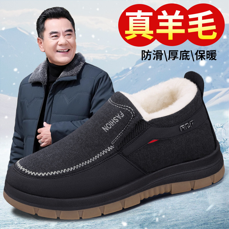 Old Beijing cloth shoes winter 2025 new fleece thickened wool warm cotton shoes non-slip middle-aged and elderly dad cotton boots