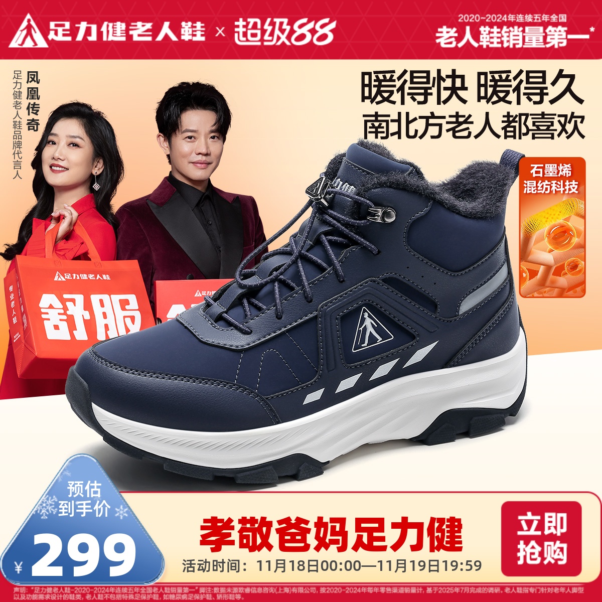 Zulijian flagship store 2025 winter new middle-aged and elderly warm shoes graphene fleece casual dad cotton shoes