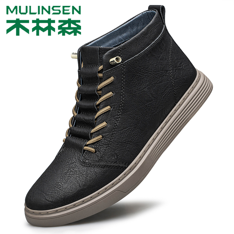 Camel [Coffee Bean Shoes] Winter New Fleece Thickened Warm Martin Boots Men's Top Layer Cowhide High-Top Board Shoes