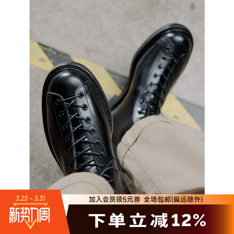 Dark fans must be included! BBS handmade polish distressed inner and outer full cowhide lace-up high-top men's boots
