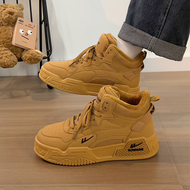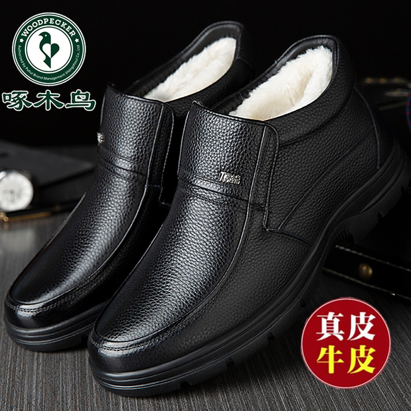 Woodpecker cotton shoes, men's high top winter fleece thickened warm leather wool snow boots, middle-aged and elderly dad leather shoes