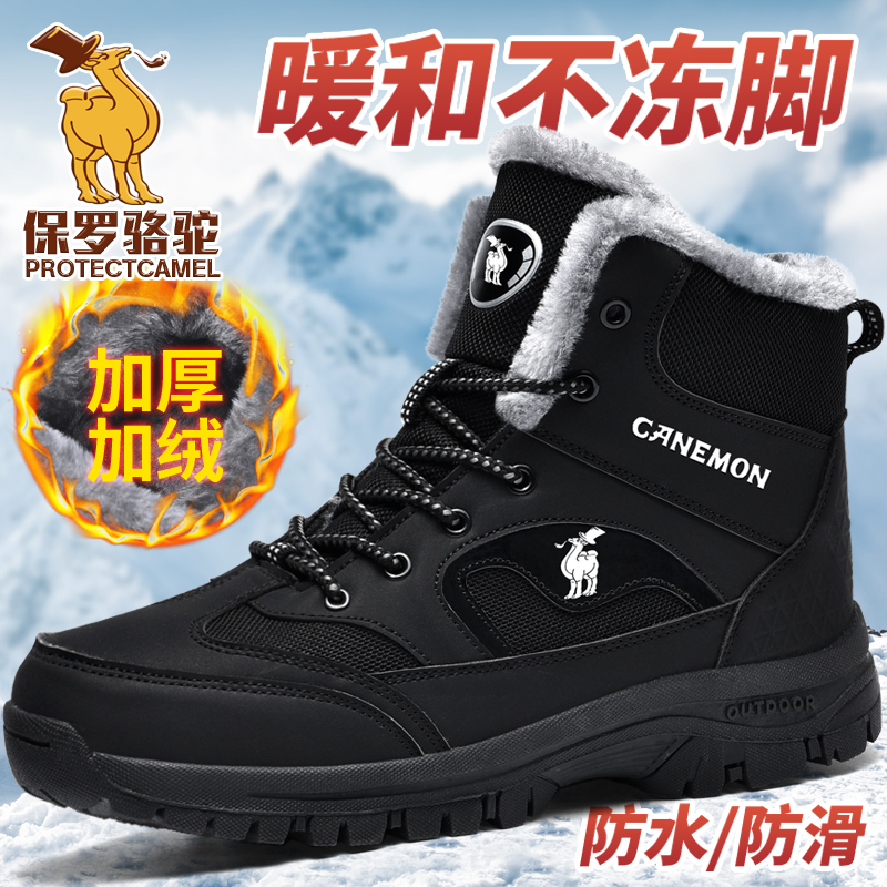 Paul Camel Men's Winter Shoes Non-slip Waterproof Fleece Thickened High Cotton Shoes Men's Winter Cold Resistant Warm Snow Boots