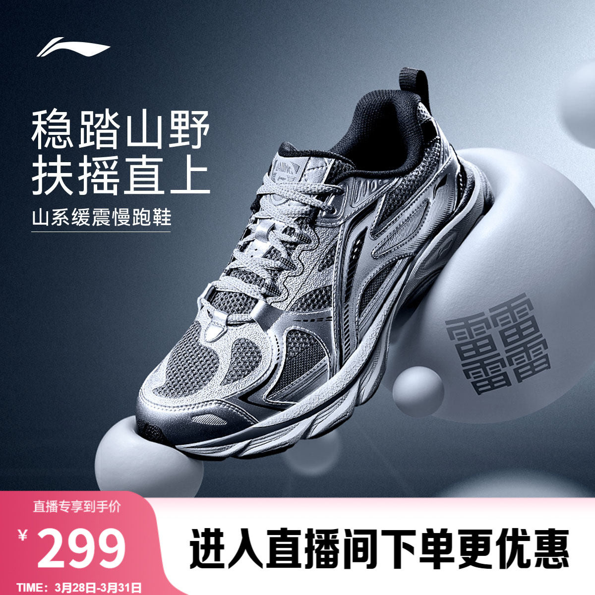 Li Ning Fuyao boom丨䨻 cushioned running shoes men's shoes new mountain outdoor hiking leisure shock-absorbing sneakers