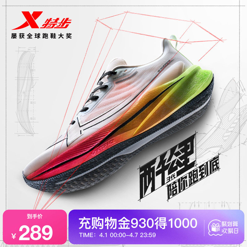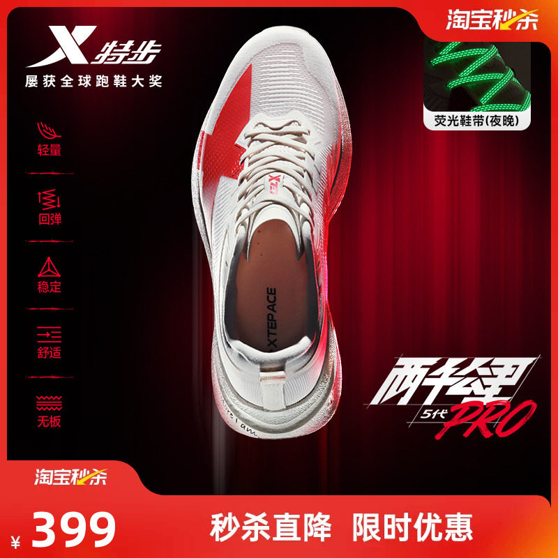 Xtep 2,000 kilometers 5th generation PRO丨Running shoes men's plateless body measurement running shoes shock-absorbing and wear-resistant sneakers women's fifth generation