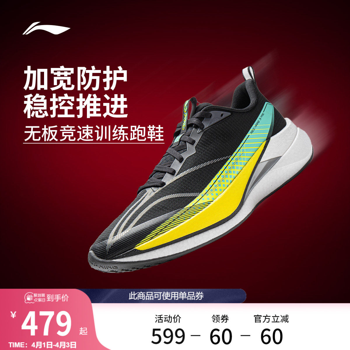 Li Ning Chitu 9PRO | Running shoes, men's high school entrance examination, physical test, shock absorption, lightweight, boardless racing training, sports shoes
