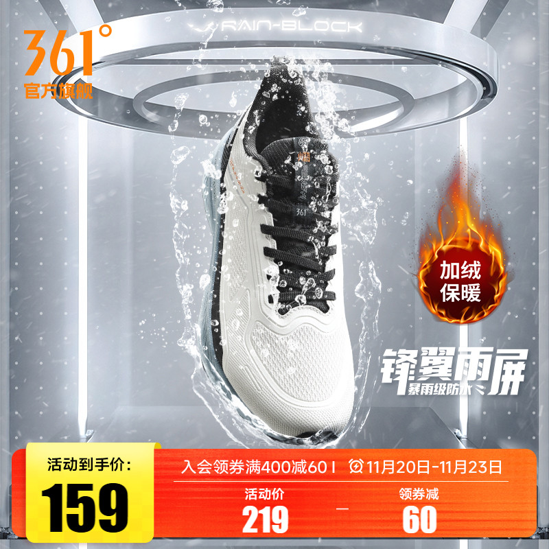361 Fengyi rainscreen running shoes, winter rainy day commuter shoes, fleece waterproof sneakers, shock-absorbing anti-slip running shoes for men