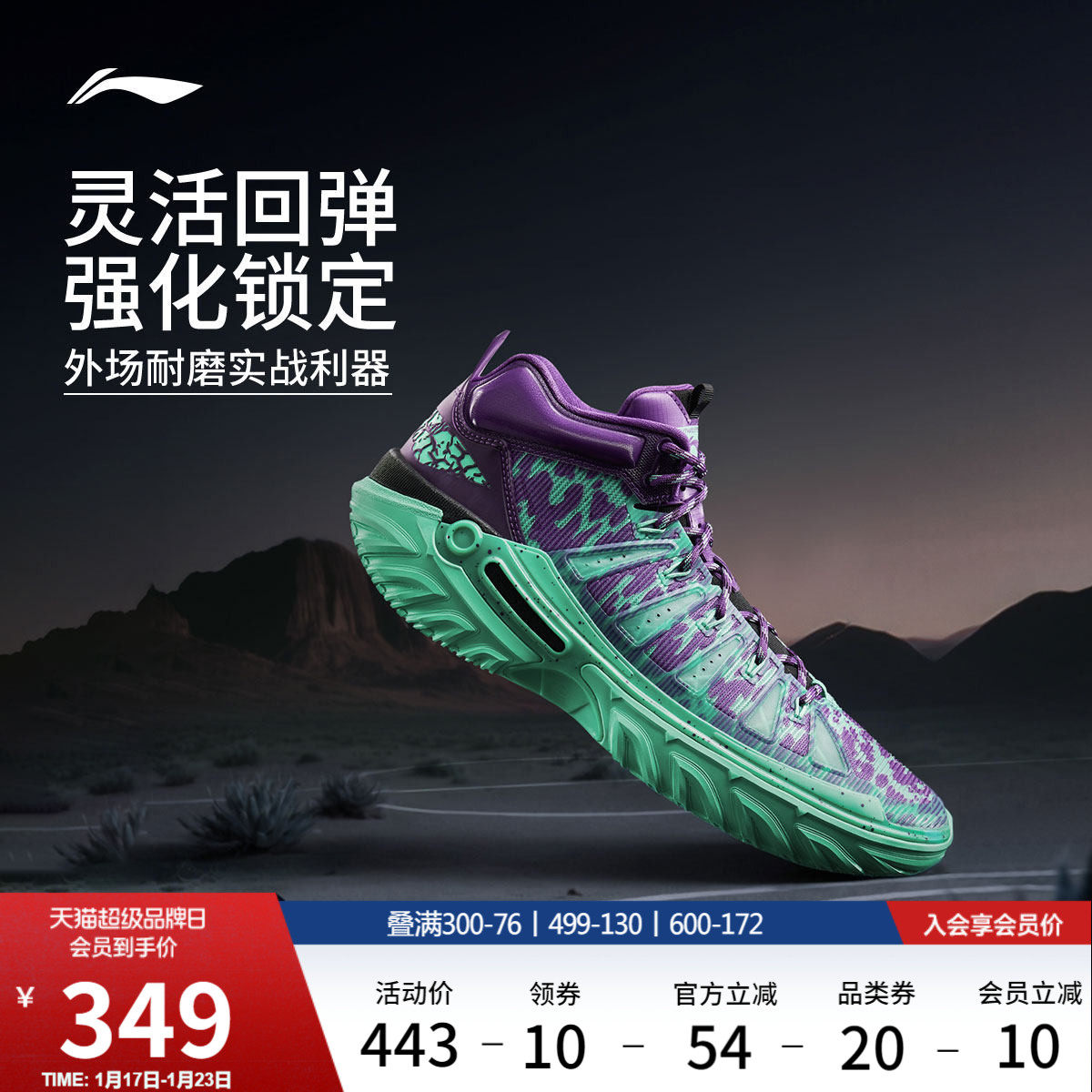 Li Ning Jie 2 High丨 Basketball shoes men's rebound stability new outfield wear-resistant professional sports shoes