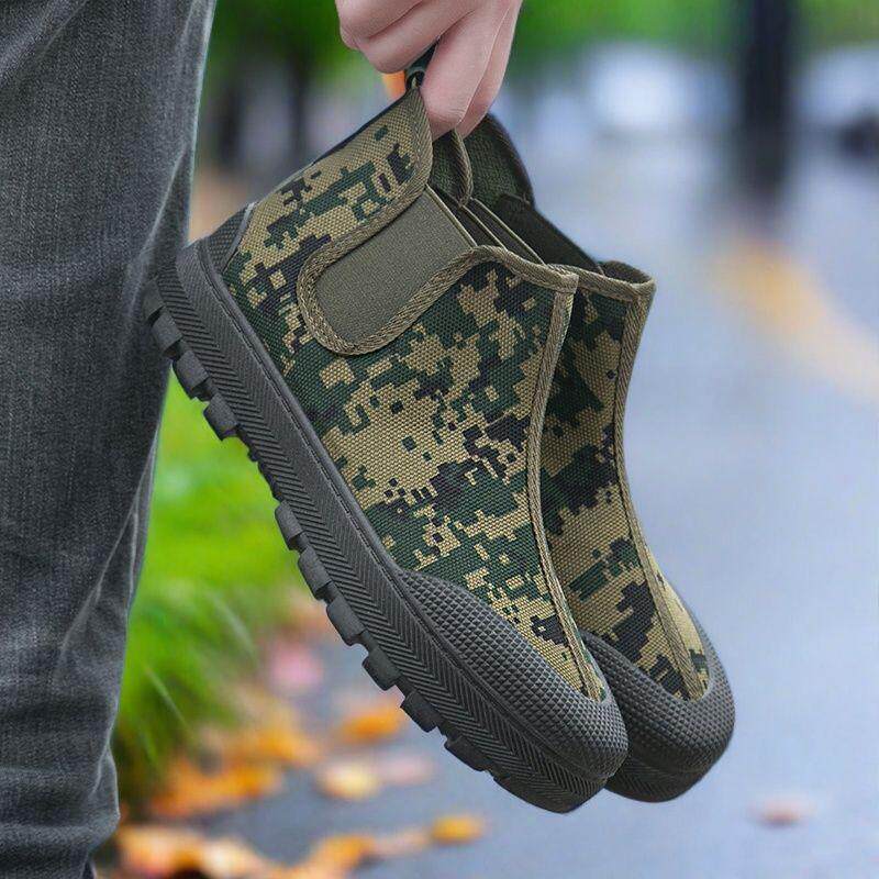 3618 Jiefang shoes men's construction site anti-slip and wear-resistant camouflage labor protection shoes work lazy people high-top yellow rubber shoes