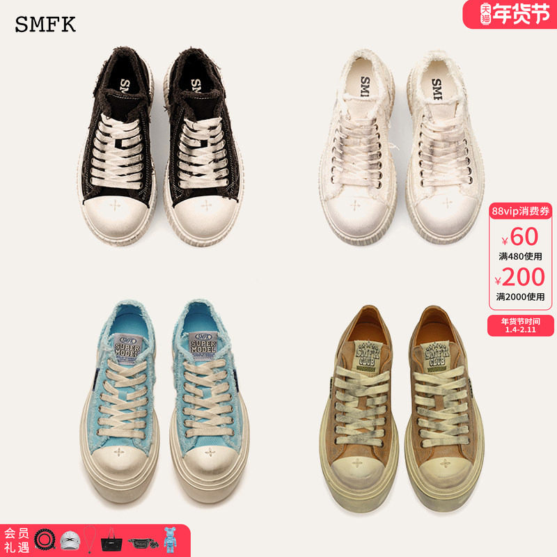 Hong Kong platform muffin canvas shoes women's spring and autumn 2025 new versatile lace-up white shoes fashionable casual board shoes
