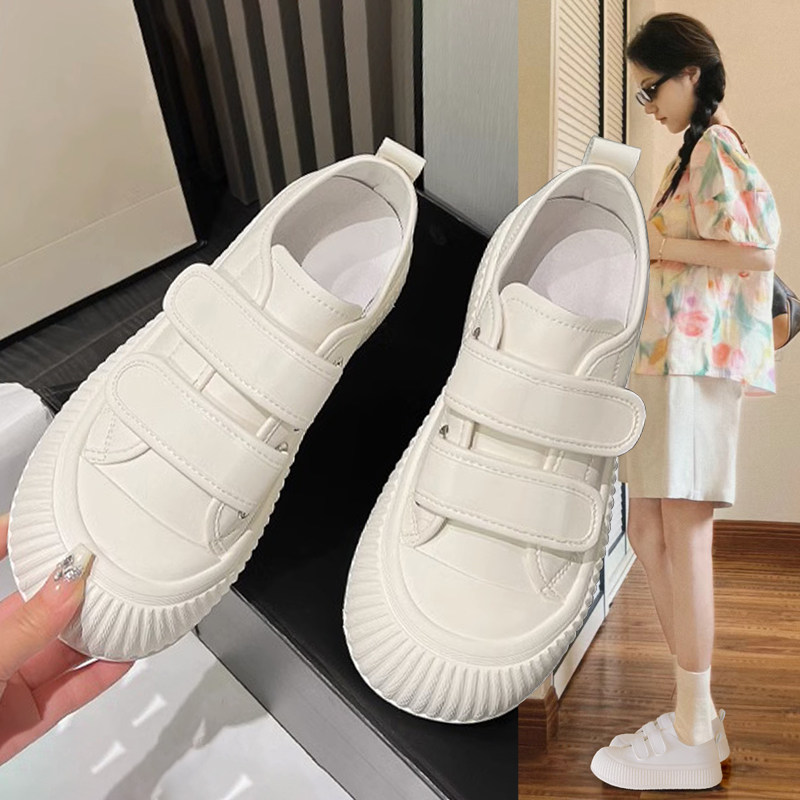 Hong Kong leather platform bread shoes women's 2025 new trendy shoes original niche velcro casual shoes biscuit shoes