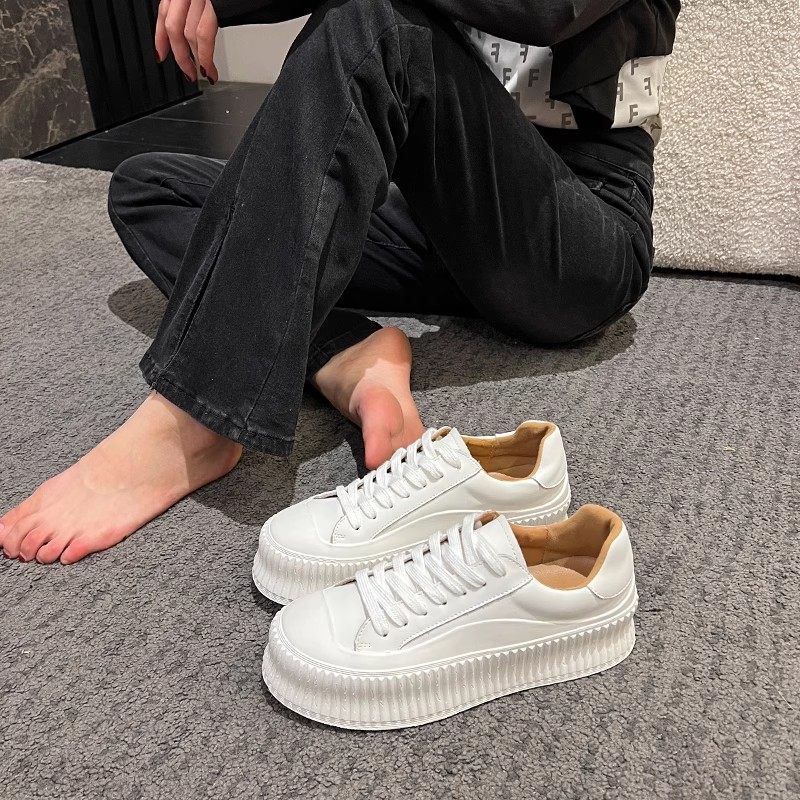 Hong Kong leather platform white shoes women's 2025 spring and autumn new versatile flat sports and casual shoes women's board shoes