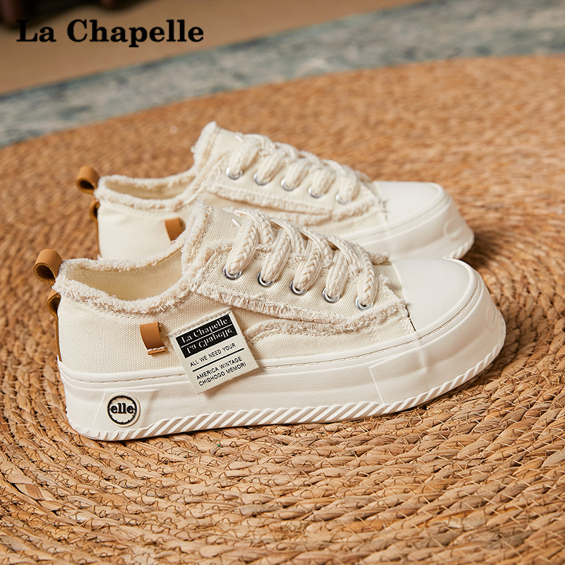 La Chapelle canvas shoes women's 2026 new spring, summer and autumn platform soles with skirts, white shoes, white versatile board shoes