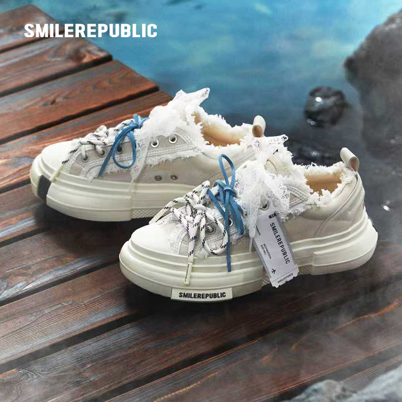 Ouder smiles canvas shoes women's platform heightening casual board shoes round toe ugly cute couple low-top big toe shoes