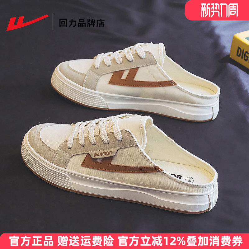 Pull back women's shoes semi-flip canvas shoes 2026 summer new canvas slippers versatile board shoes for women in white shoes