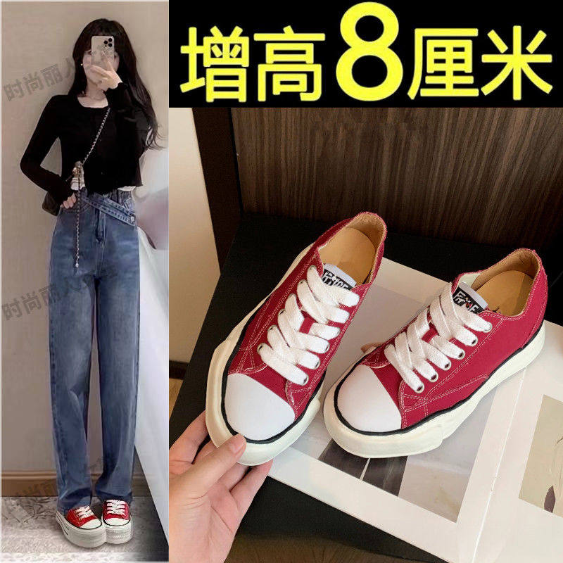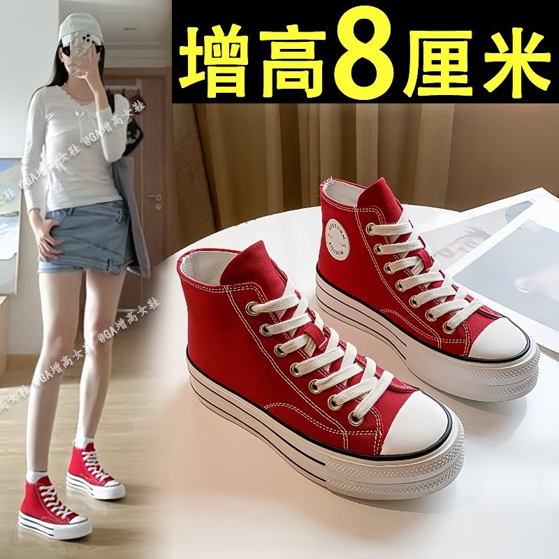 Height increase of 8cm ~ thick-soled high-top canvas shoes women's 2026 new small inner heightening board shoes red casual shoes