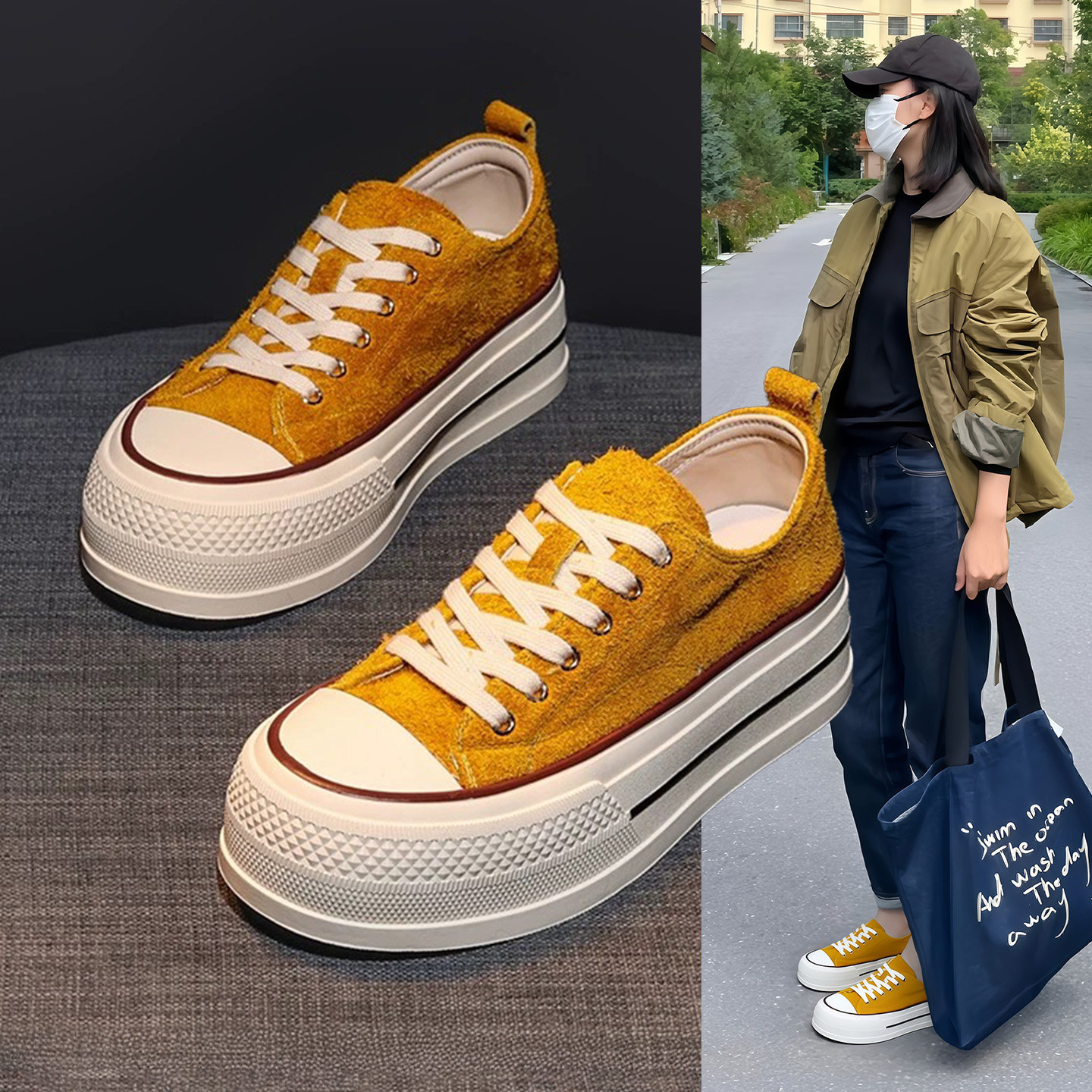 Hong Kong small fragrance women's shoes, ins trendy dissolving shoes, casual board shoes, 2025 spring and autumn new versatile platform canvas shoes