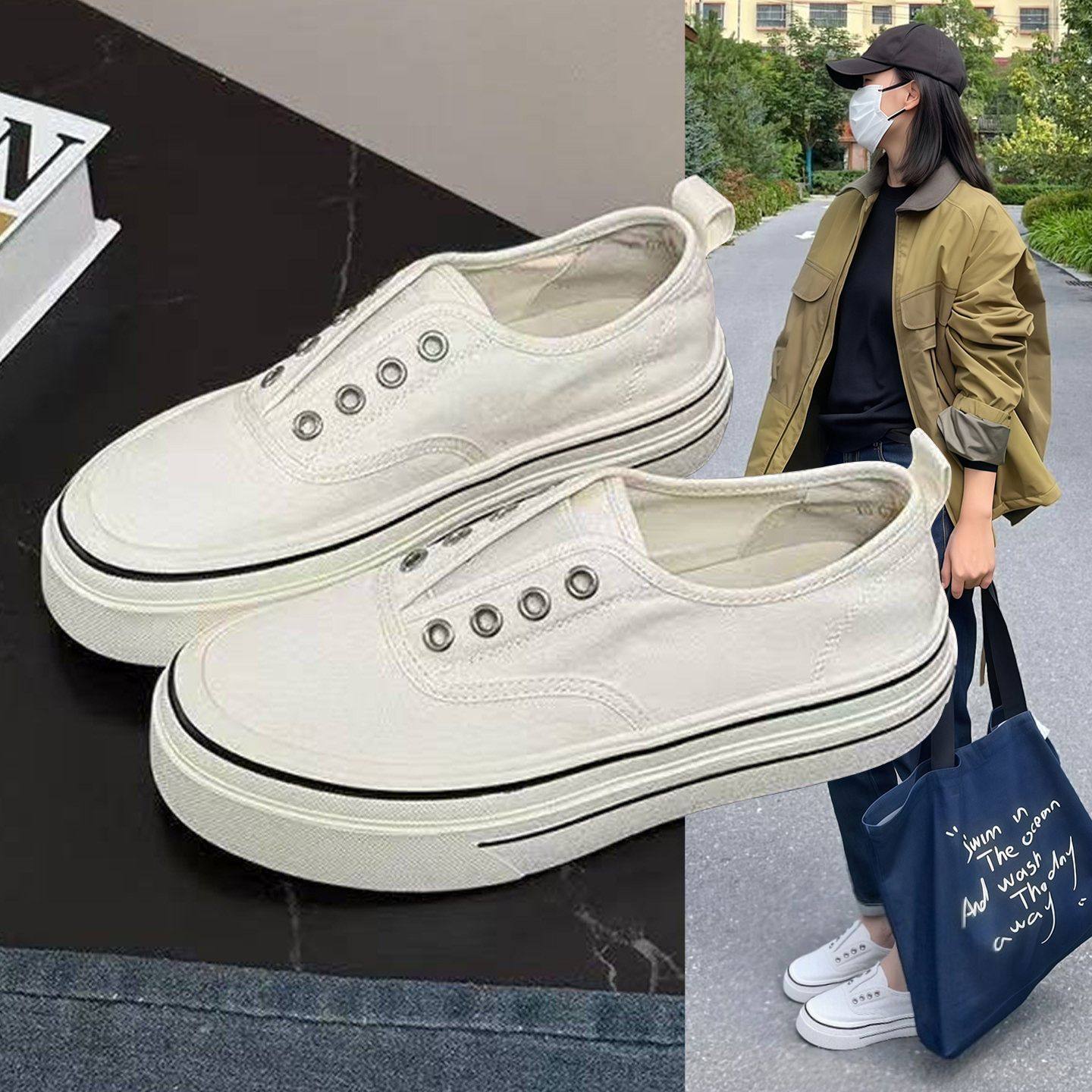 Little white shoes girl's 2025 new spring and summer lazy canvas shoes one-foot shoes women's trendy ins versatile niche